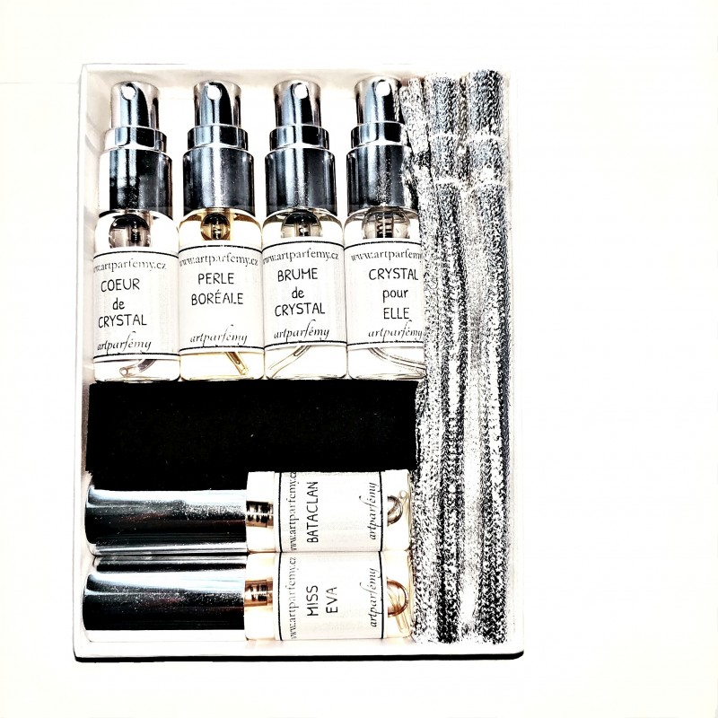 6 ks francouzských parfémů z kolekce Les Crystals po 5 ml si vyzkoušíte v klidu domova za minimální cenu a každý den je můžete střídat. Využijete je také jako malý, neokázalý dárek pro kohokoliv, koho chcete potěšit.  Malé balení má velmi praktické využití na cesty, vezmete si je sebou do kabelky a svůj parfém máte stále po ruce. Láhvičky nevyhazujte, mají šroubovací uzávěr. Pokud si ze vzorků vůni oblíbíte, můžete dokoupit větší balení a  parfém doplnit.